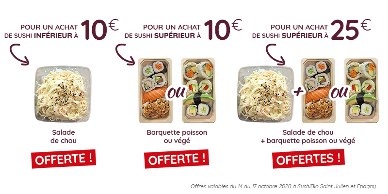 Profitez pendant ces 4 jours d’offres à découvrir dans l’espace SushiBio de vos magasins BioFrais Saint-Julien et Epagny.